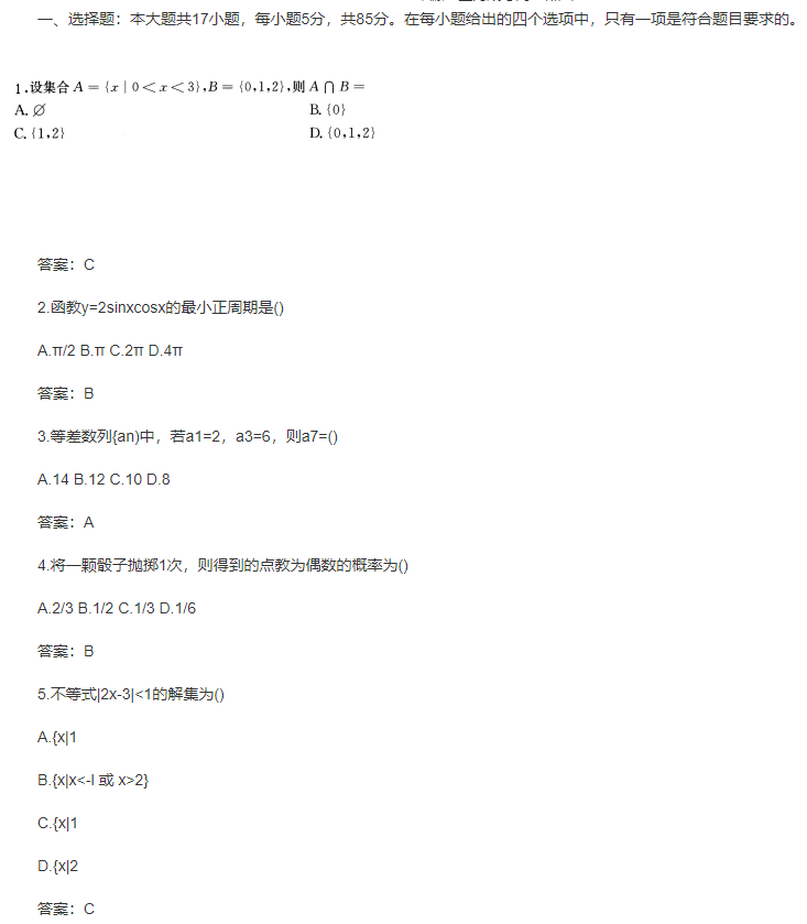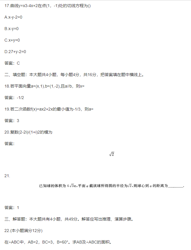 【摘要】2017年上海成人高考高升專(理科)數(shù)學(xué)考試試卷及答案...