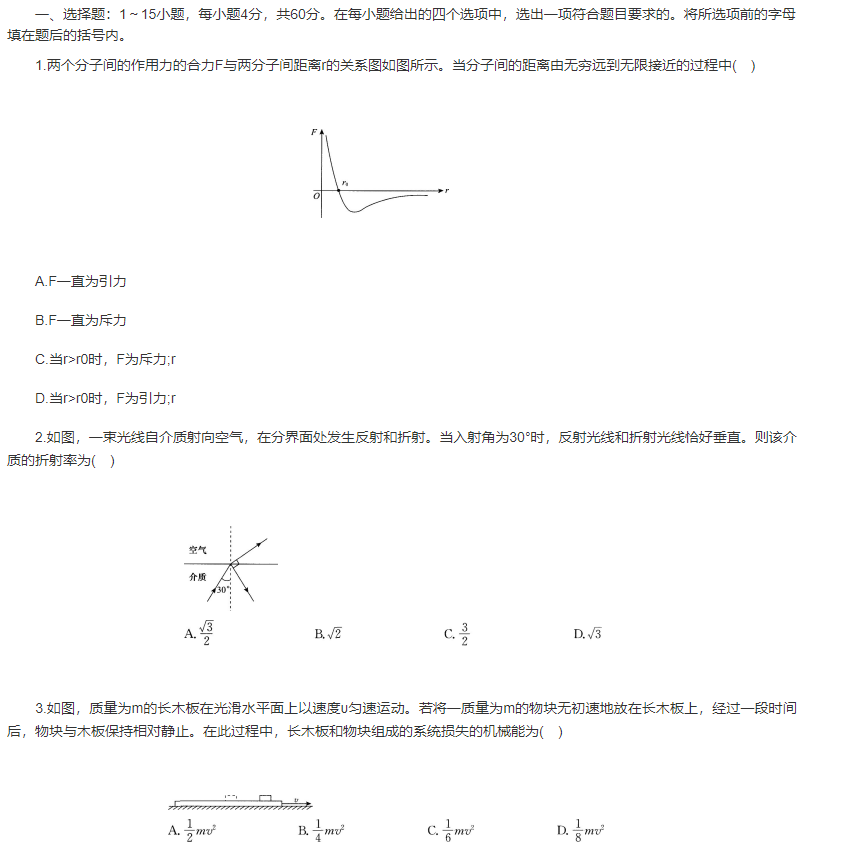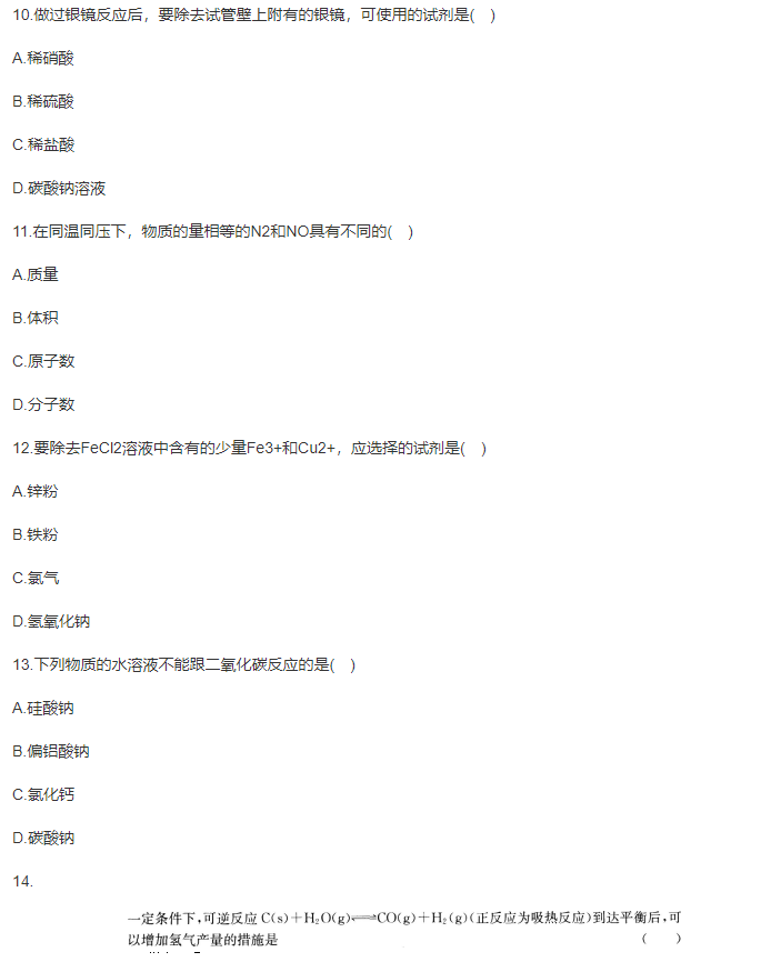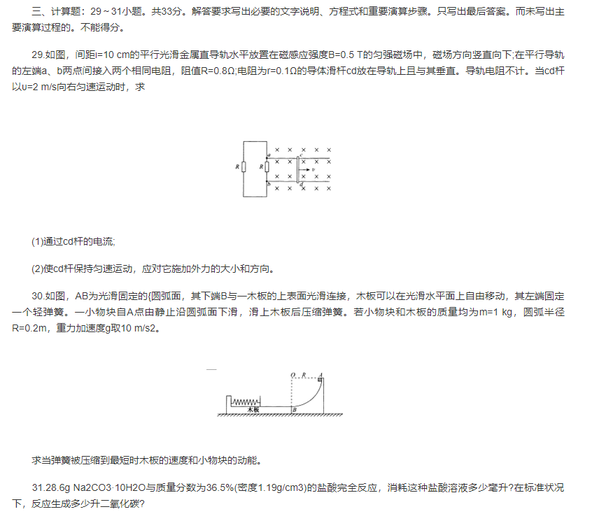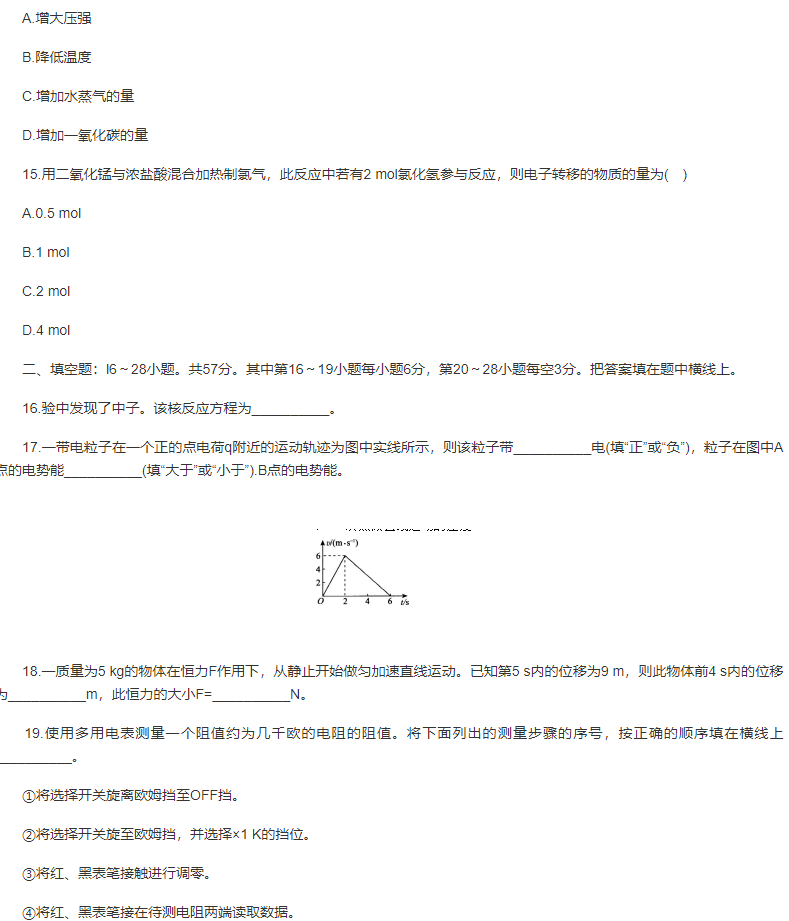 【摘要】2017年上海成人高考高升專理化綜合考試試卷...