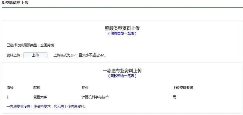 2.第一志愿專業(yè)學(xué)校為專業(yè)設(shè)置了需要上傳的資料類型,則需要考生上傳證明資料。