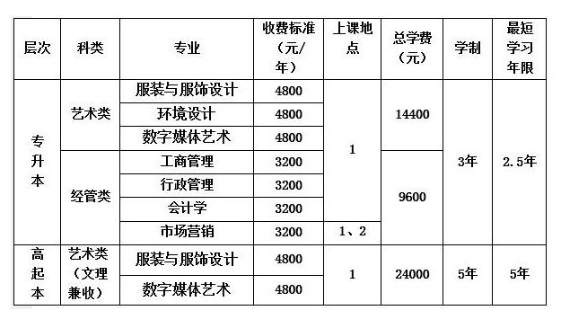 四、招生專業、收費標準、上課地點、學制、學習年限